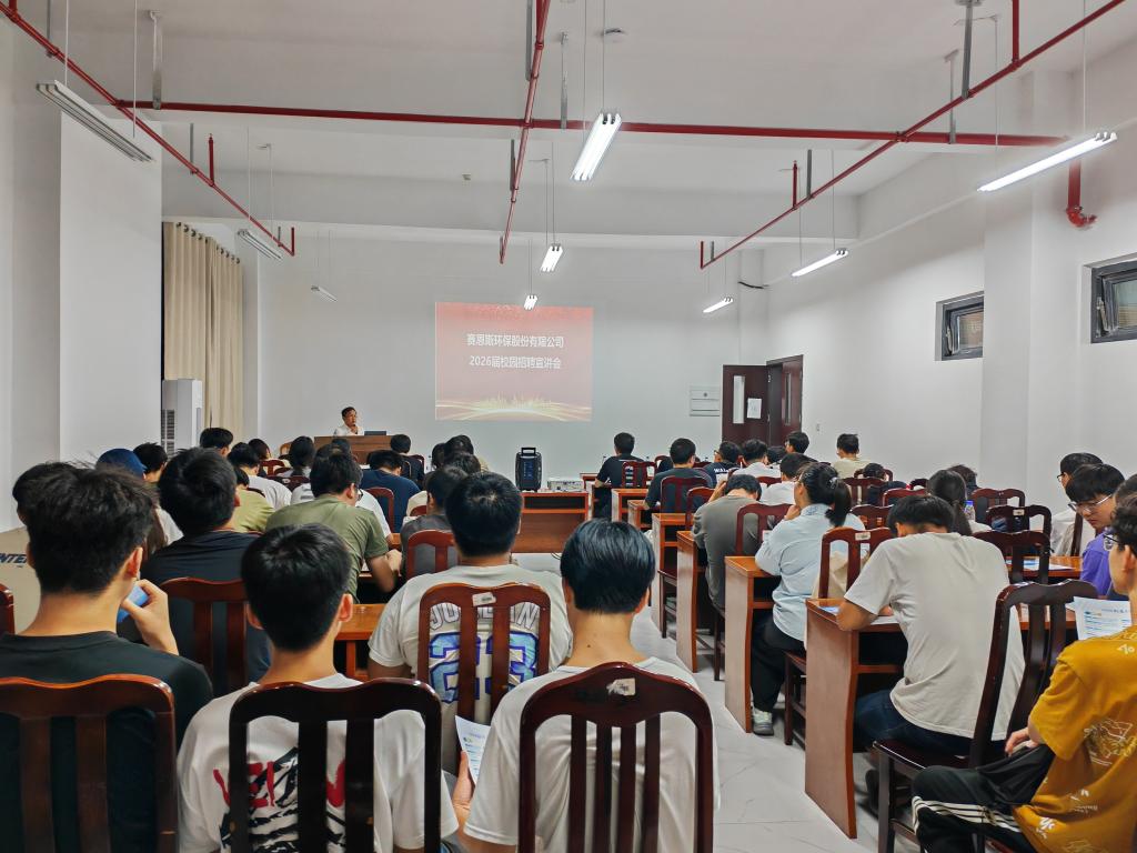 本网讯 近日,赛恩斯环保股份有限公司在我校三江校区(西园)天工楼第二会议室举办2026届校园招聘宣讲会。公司招聘宣讲人员,学院2022级各专业学生及相关老师参加本次招聘会。