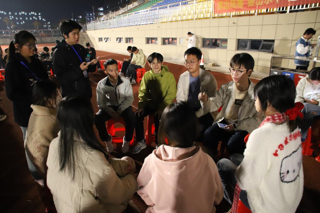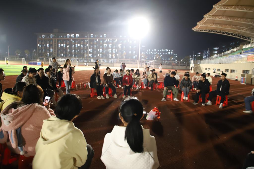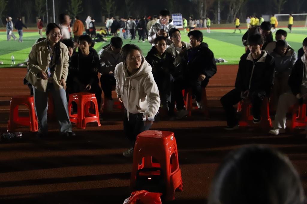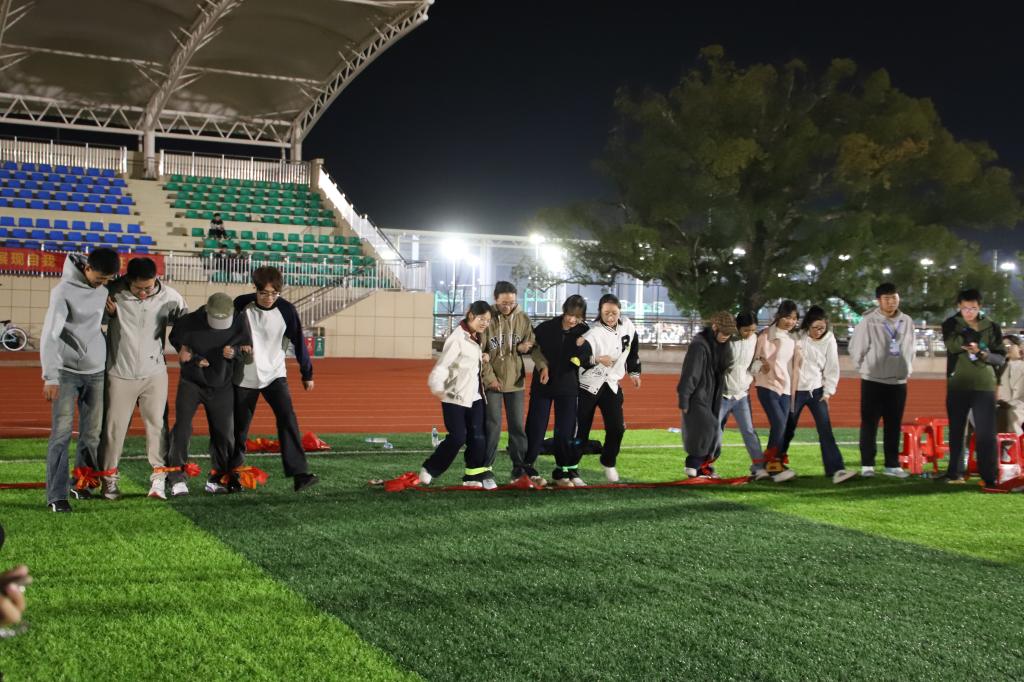 本网讯 为进一步丰富校园文化生活,凝聚向心力,营造温馨和睦的氛围。11月22日晚,我院在三江校区(西园)田径运动场举办了第十五届寝室文化艺术节之“同寝共乐 青春飞扬”寝室游戏大作战趣味活动。活动由学院学生社区服务中心、朋辈心理服务中心承办,设置了“石头剪刀布”“猜歌名”“你画我猜”“四人五足”四大趣味环节,吸引了全院众多同学踊跃参与,现场欢声笑语不断,青春气息盎然。