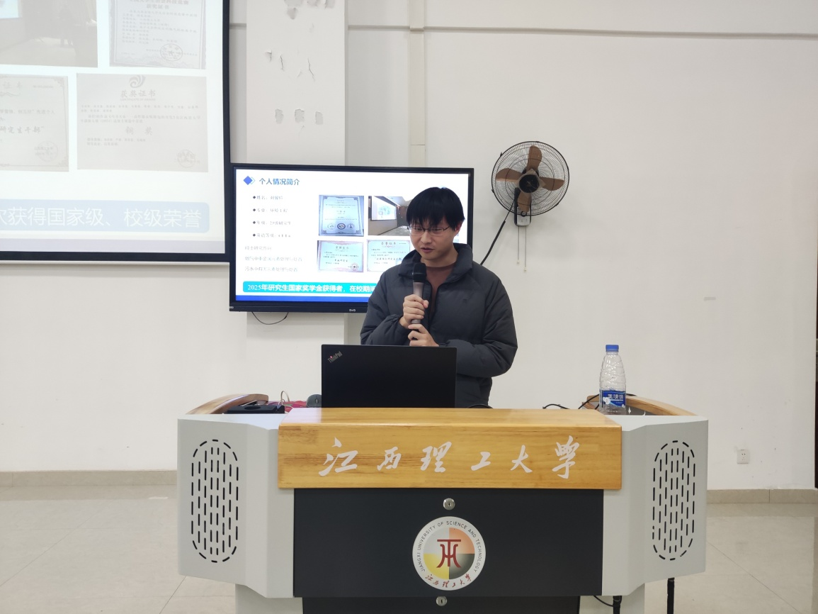 环境工程专业刘翼瑄同学聚焦“烟气与污水有害元素处理”研究方向,详细拆解了科研项目从选题立项到成果落地的全流程:从如何依托国家自然科学基金项目确定研究切入点,从如何寻找创新点到材料制备、性能测试中的关键技术难点突破,再到中科院一区 TOP 论文的写作逻辑与投稿技巧,他还分享了自己在学生工作与科研平衡中的时间管理方法,为学弟学妹提供了“双线并进”的实践参考。他还分享了面对压力与困难如何调整自己的几点建议。